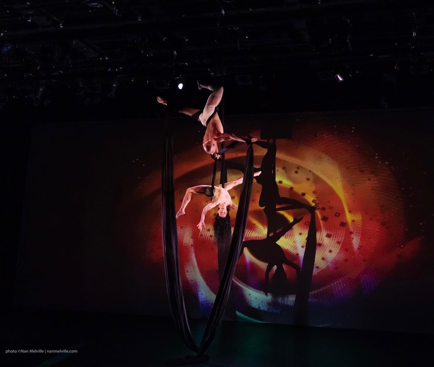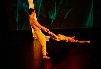 Ms Barbosa and Mr Dzul explore the air element through aerial dance to add sensorial anti gravitational feeling to the spectators creating a sense of lightness and weightlessness, magnifying their transformational meditative state in conjunction with the sounds and lighting effects. An ensemble cast reflects wholeness through powerful music and togetherness in dance weaving across the stage through beautiful images by multimedia art designer Marcela Bragagnolo. Musician Michael Ulmer also holds the space with sacred instrumentation and ecstatic rhythm which affects not only the choreography but all viewers at a cellular level.